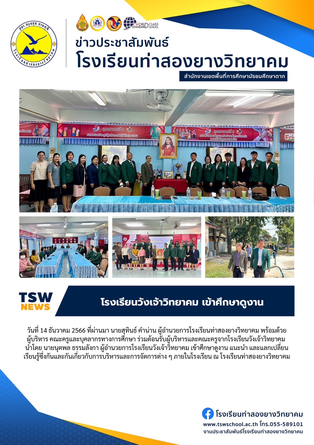 โรงเรียนวังเจ้าวิทยาคม เข้าศึกษาดูงาน